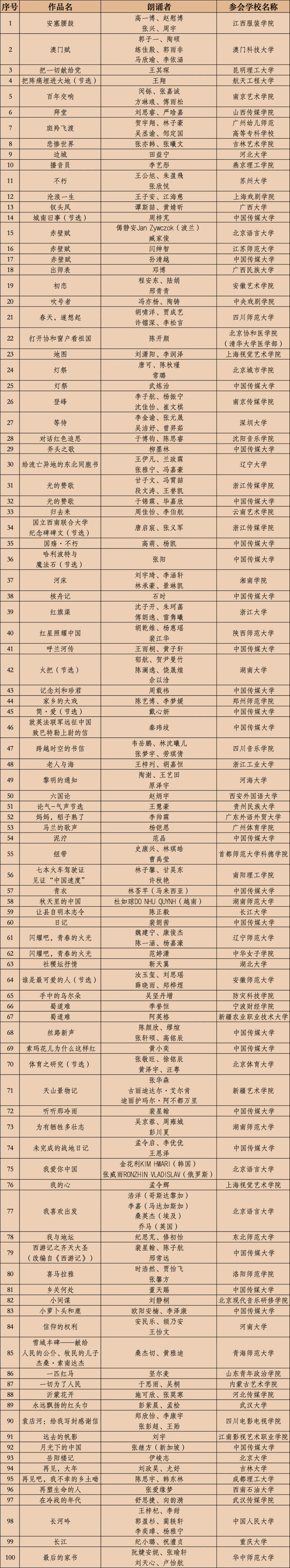 第26届齐越朗诵艺术节暨全国大学生朗诵大会全国复选百部作品名单公告发出,我院报送的朗诵作品《在冷战的时代》入选。