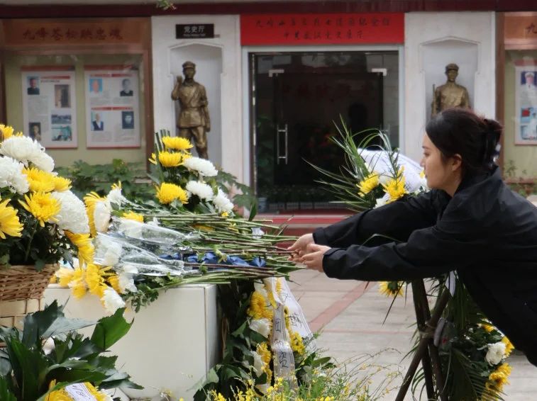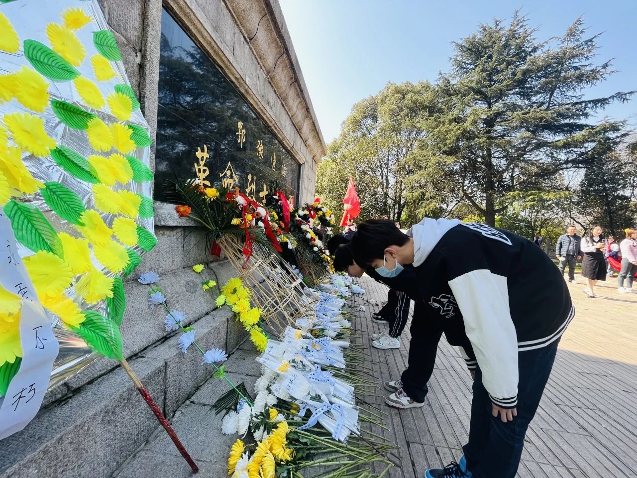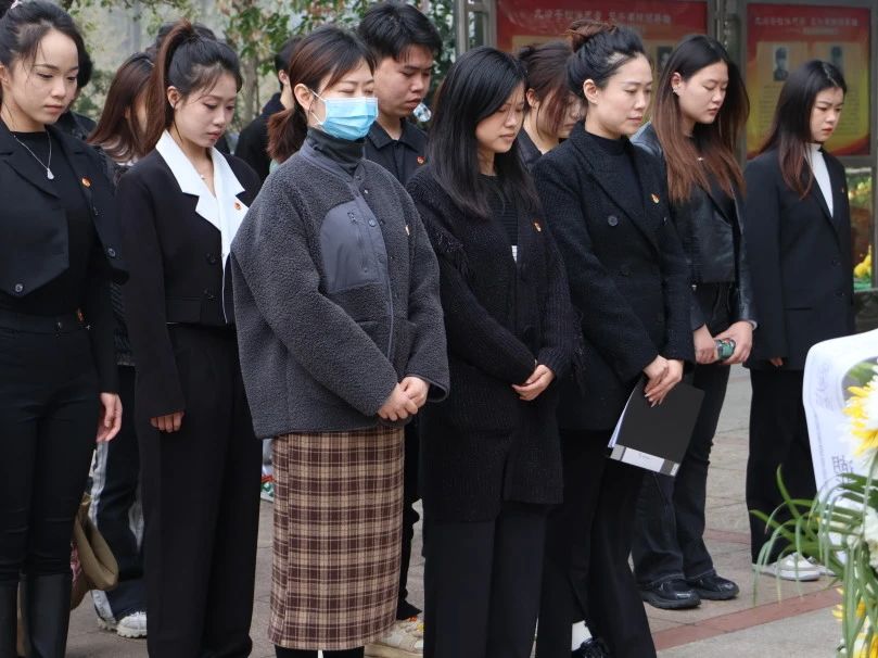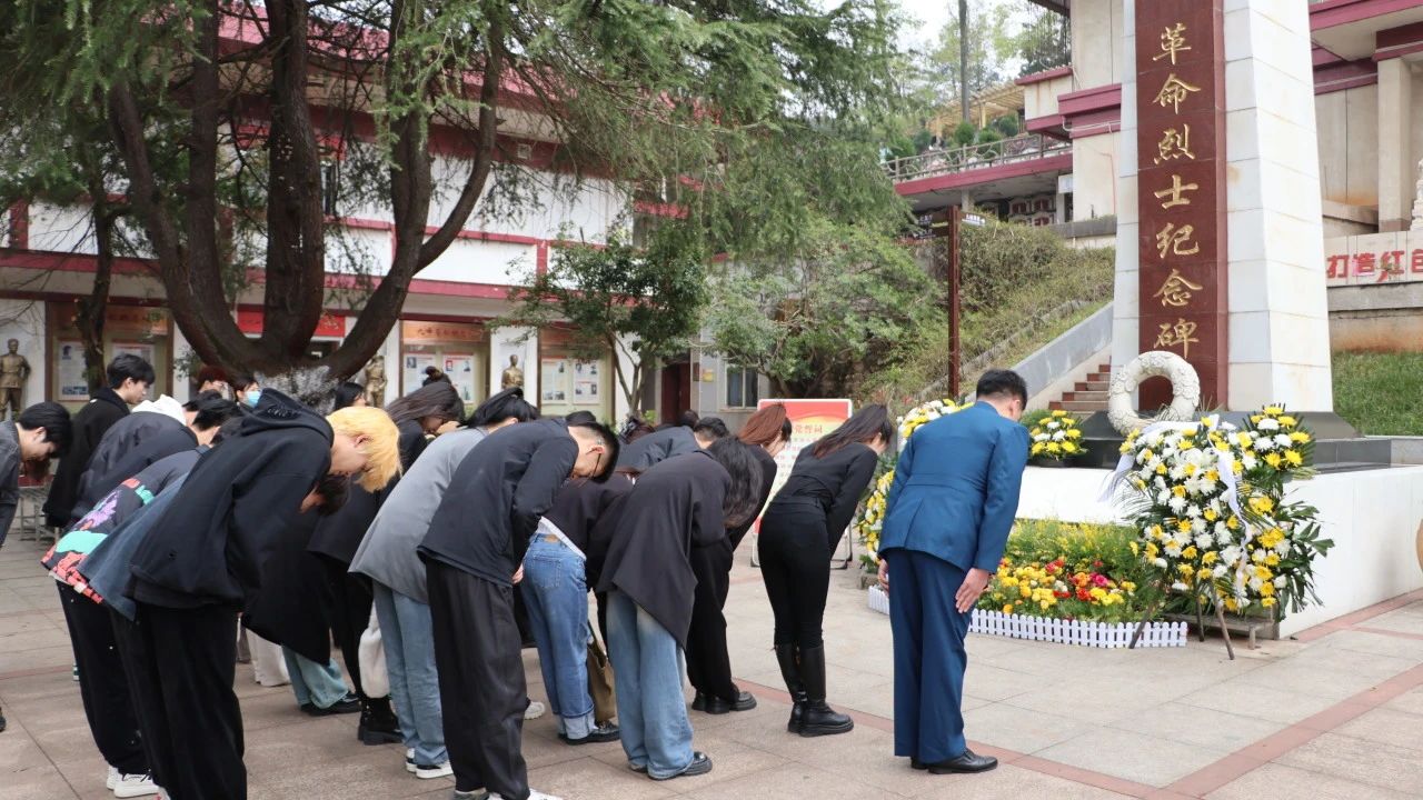 全体师生向革命烈士纪念碑低头默哀,表达对烈士们的深切缅怀与无尽敬意。默哀结束后,师生们向纪念碑敬献鲜花,以此寄托对烈士们的敬仰与怀念之情。