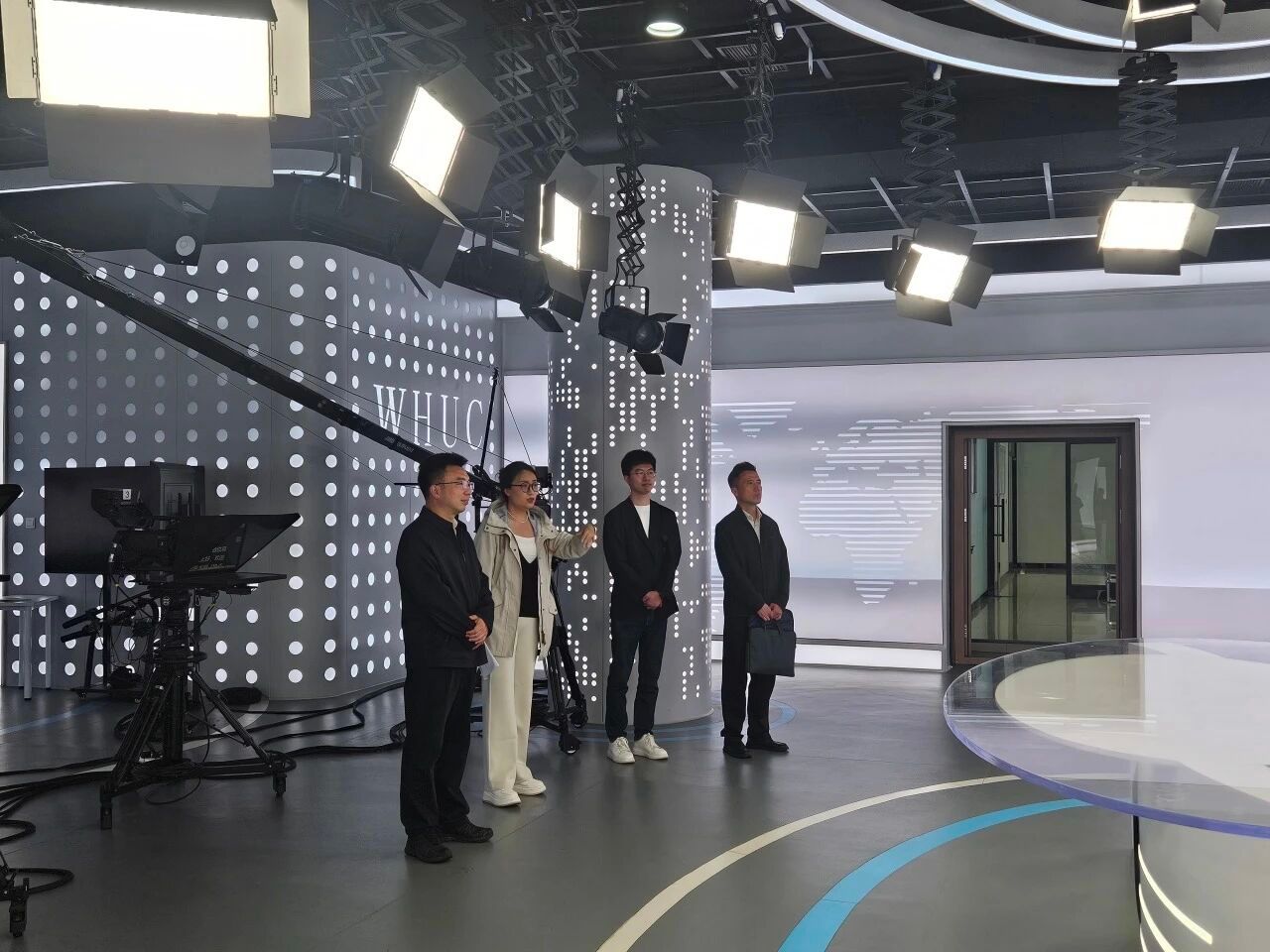 许巍一行先后考察了实验实训中心及播音主持学院的场地设施,对我院社科普及基地整体建设和研究成果表示赞赏。