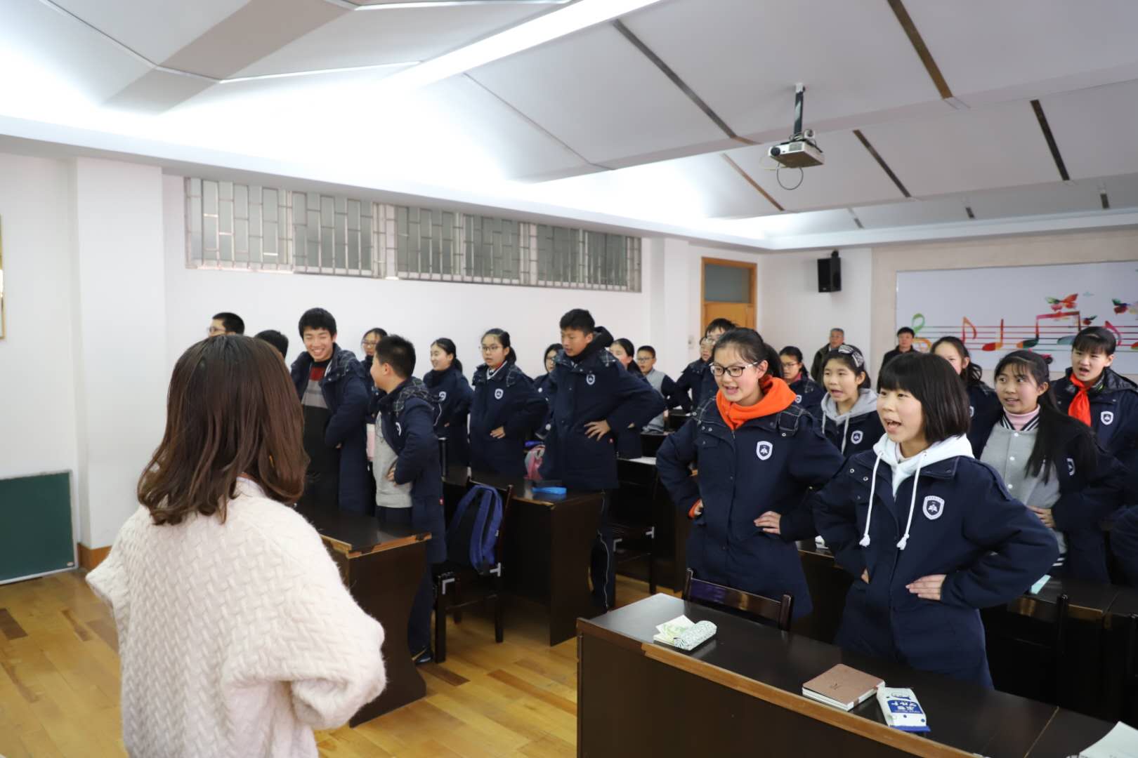在正式上课之前,两校在场人员共同进行了“党员服务站”的授牌仪式并进行合影留念,这一举措意味着英国威廉公司和武汉市水果湖二中战略合作关系已经正式建立。武汉市水果湖二中潘校长提出,我校学生党员进校园宣传推广播音主持艺术的行为不仅能激发学生对朗诵和播音主持艺术的浓厚兴趣,也在校园里播下了艺术萌芽的种子。