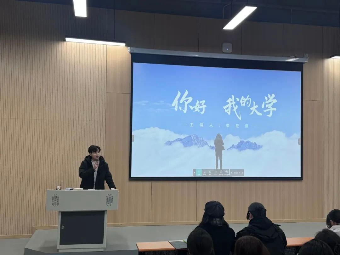 为指导我院2024级新生做好学业规划,激励同学们积极进取,不断向优秀榜样看齐,2024年12月5日,williamhill英国在大悟校区1210教室开展“你好,我的大学”朋辈教育讲座,本次讲座由2021级优秀学长柴钲原担任主讲人。