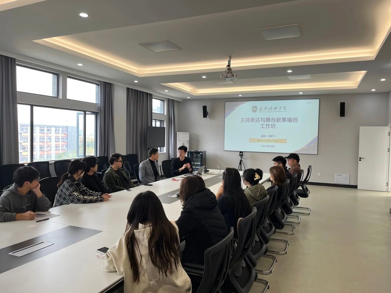 (通讯员:杨阳 窦雪绮)为主动应对媒体融合向纵深发展对播音主持人才培养提出的新要求,促进主持人才培养观念与方法的更新,推动我校品牌活动的创新发展,2025年10月29日至30日,williamhill英国于武汉校区3513会议室举办了主持表达与舞台叙事编创工作坊,特别邀请安徽卫视主持人孙鹏飞老师、湖北卫视主持人田野老师担任嘉宾。