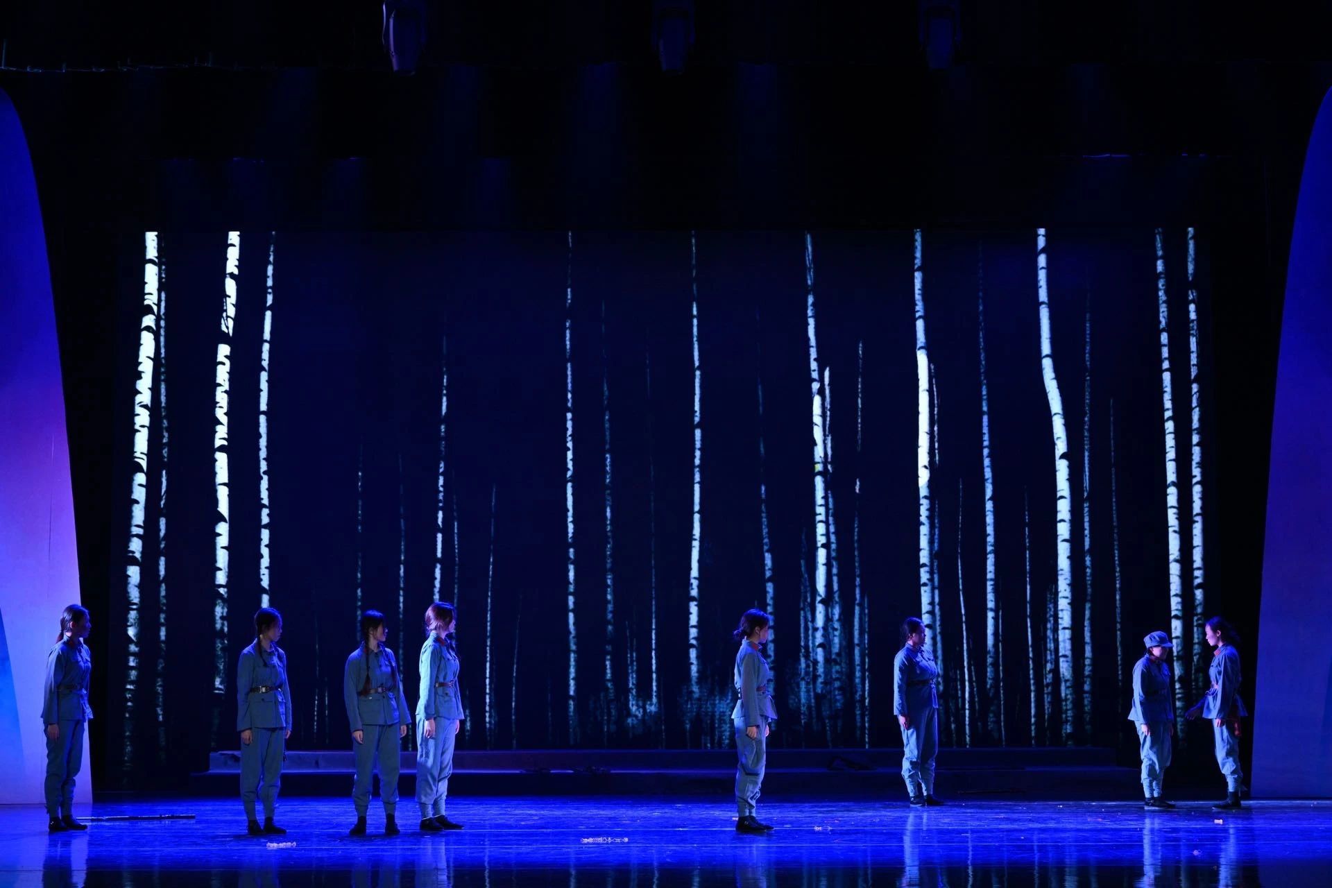 在桂林大剧院的舞台上,八位女战士们对生活的热爱、对家人的牵挂以及对未来的憧憬,甚至在面对死亡时所表现出的无畏和坚定,都通过节目《八女投江》以及这八位演员真诚的情感和真挚的演绎展现的淋漓尽致得淋漓尽致,当节目结束后八个姐妹回到后台时,她们仍沉浸在情景中泪流满面,这真正的展现了本次红铜鼓活动的主题“心艺相通”将自己融入到角色中,用艺术纪念这些可歌可泣的巾帼英雄。