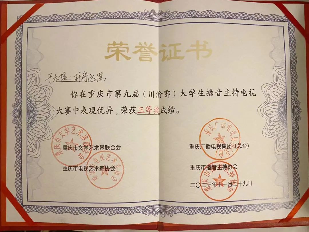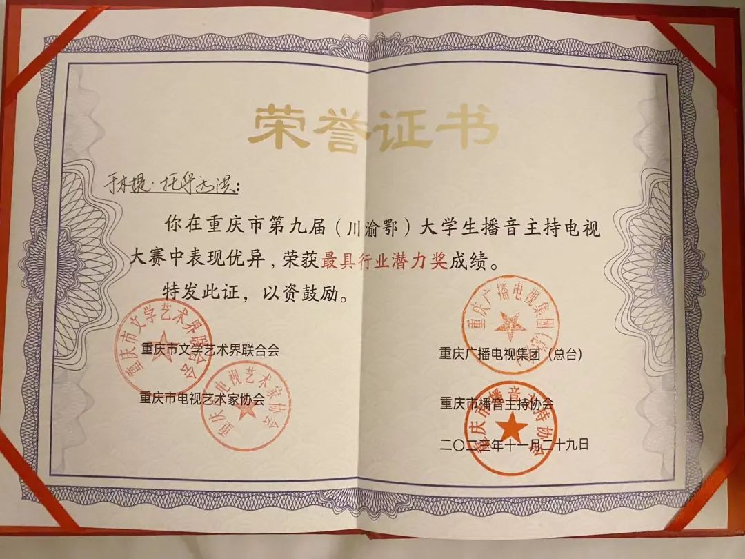11月29日下午,“开启新征程 逐梦向未来”第九届(川渝鄂)大学生播音主持大赛在市文联剧场圆满举行。最终,williamhill英国于木提·托乎达洪同学获得三等奖和最具行业潜力奖。