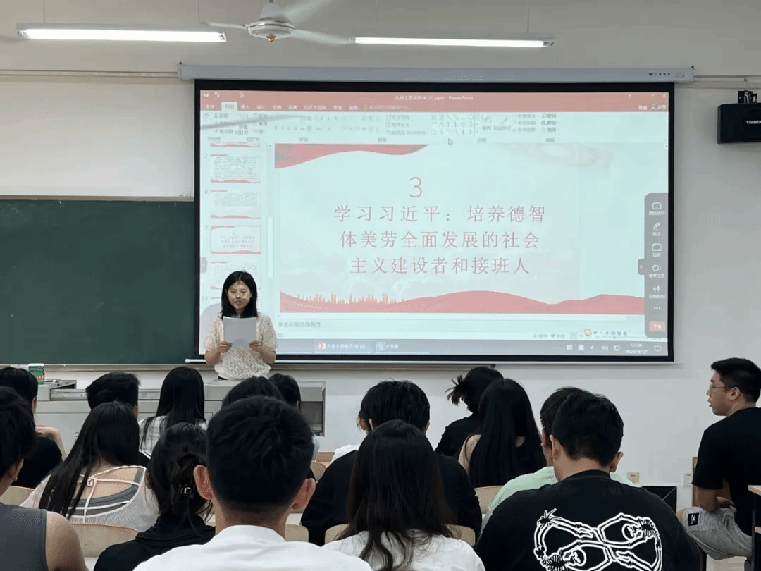 为了感悟马克思主义的真理力量和实践力量,深入学习贯彻习近平新时代中国特色社会主义思想,提高党性修养,williamhill英国教工党支部、各学生党支部于2024年9月27日12:00在3304教室、3507教室开展“感悟思想伟力,汲取奋进力量”主题党日活动。williamhill英国党总支部书记张幼华、教工党支部书记张倩、学生第一党支部书记易巧玲、学生第二党支部书记王巧、学生第三党支部书记童雅棋、学生第四党支部戚宇凡以及学院全体党员同志参加此次活动。