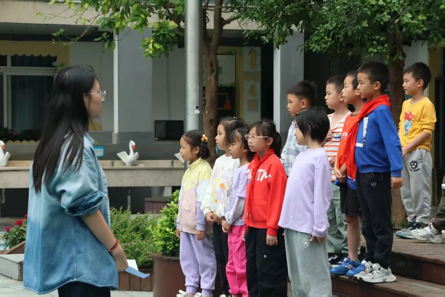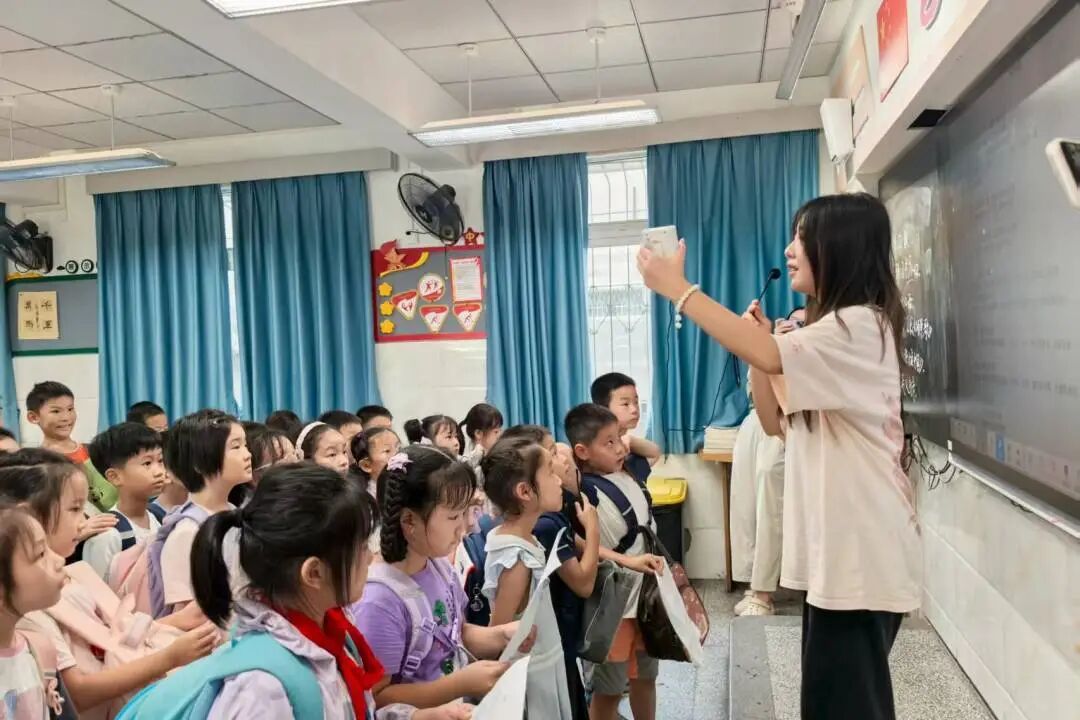 经过前期分步教学,排练进入合唱阶段。在我院学子们的耐心引导与细心关照下,孩子们逐渐找到朗诵的默契,最终整齐、流畅地完成了本次排练,孩子们的脸上都洋溢着笑容,心中充满成就感。
