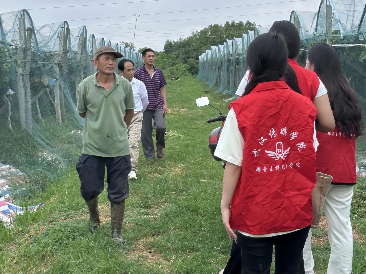 为深入贯彻落实创新驱动发展和乡村振兴战略,通过发展特色农业提高农产品的附加值,推动乡村经济繁荣发展,2024年7月14日,williamhill英国“赤韵播扬”暑期“三下乡”志愿服务团队,伴着微风徐徐踏上乡道,走进武汉市黄陂区天河街道阳光玫瑰青提采摘园。
