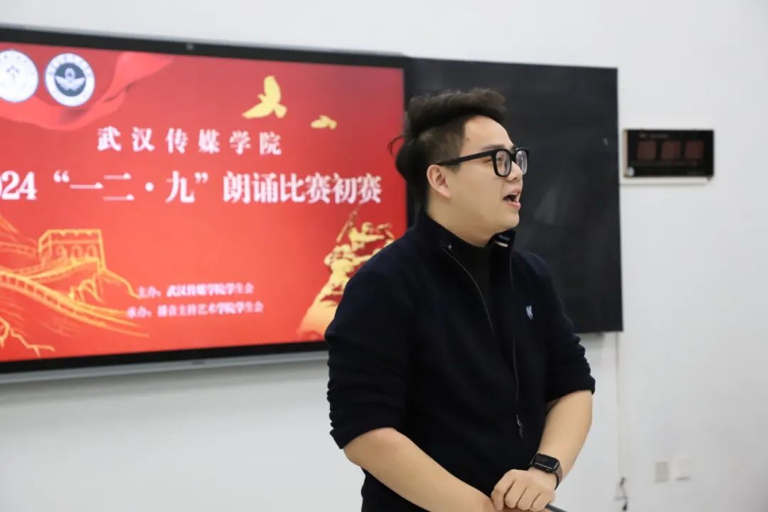 为激发广大学生的爱国主义精神,增强青年学子的责任感和使命感,坚定理想信念,树立正确的价值观。2024年12月6日,英国威廉公司在7206教室举行“一二·九”朗诵比赛初赛。williamhill英国播音主持系主任张新老师、播音主持创作基础教研室王皓翔老师、双语播音系谷佶彤老师担任本次比赛评委。