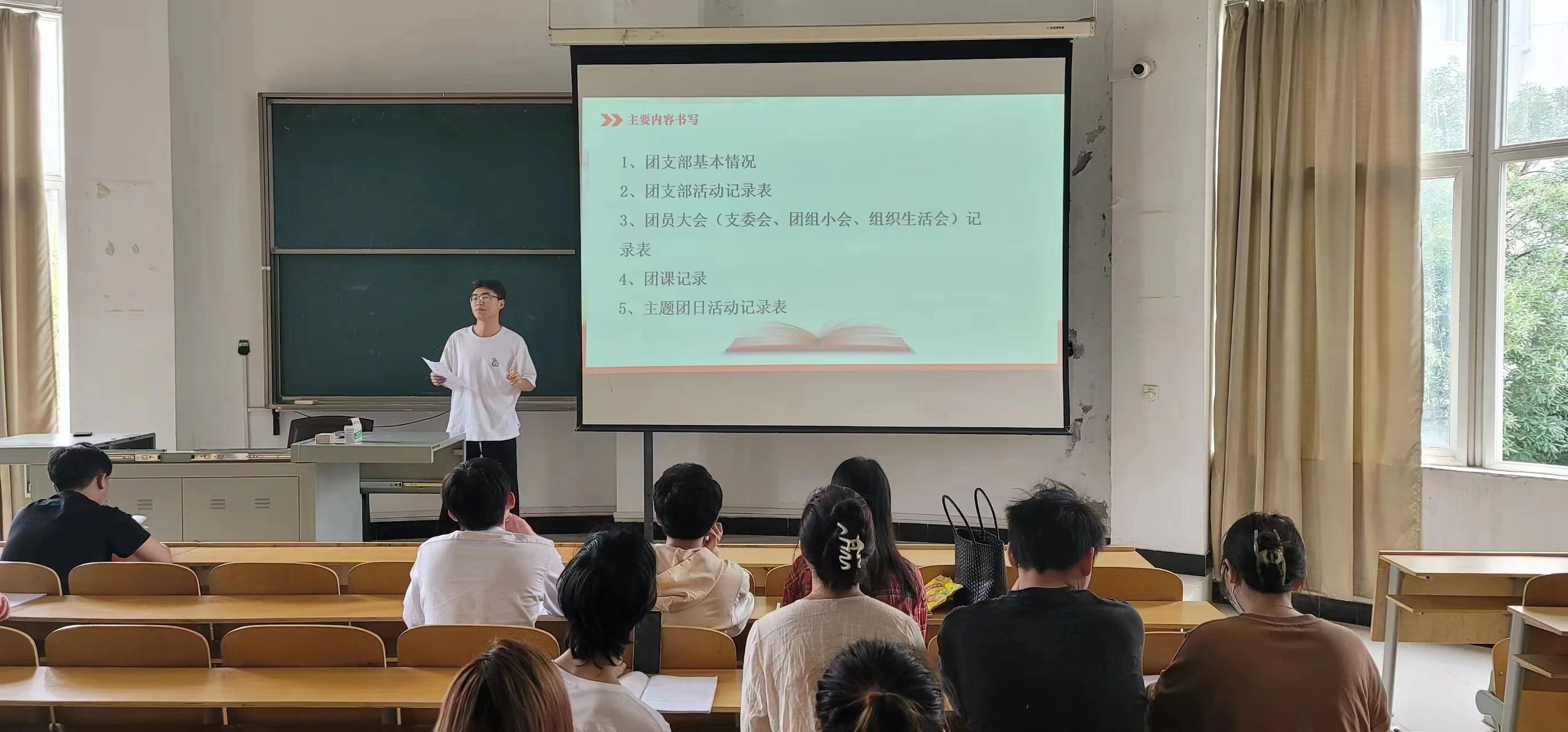 会议伊始,团委组织部部长吕家瑞为大家讲解了团支部工作手册的填写格式、内容准则以及“三会两制一课”的团支部工作模式,随后学生团委副书记邱建豪表示新学期有不少新变化、新情况,希望各位班级团支书能够灵活应变、积极工作,在新学期继续为班级同学服务。