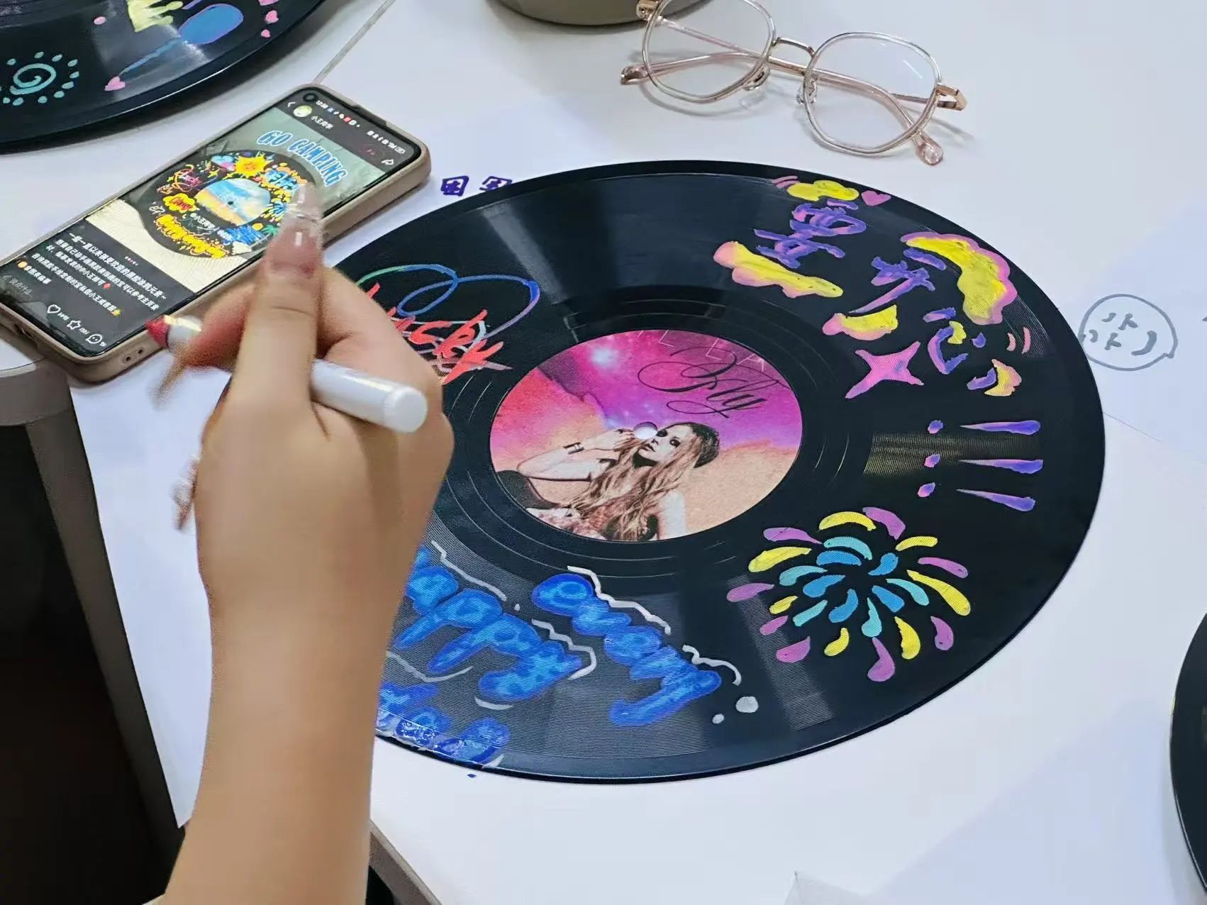 活动尾声的“情绪唱片”绘制环节,同学们充分发挥创造力,运用绚丽色彩和独特线条在空白唱片或画板上勾勒出专属自己的情绪轨迹。分享创作历程时,同学们讲述了生活温馨瞬间、倾诉面对困难时的迷茫与坚持,真挚情感引发全场强烈共鸣。