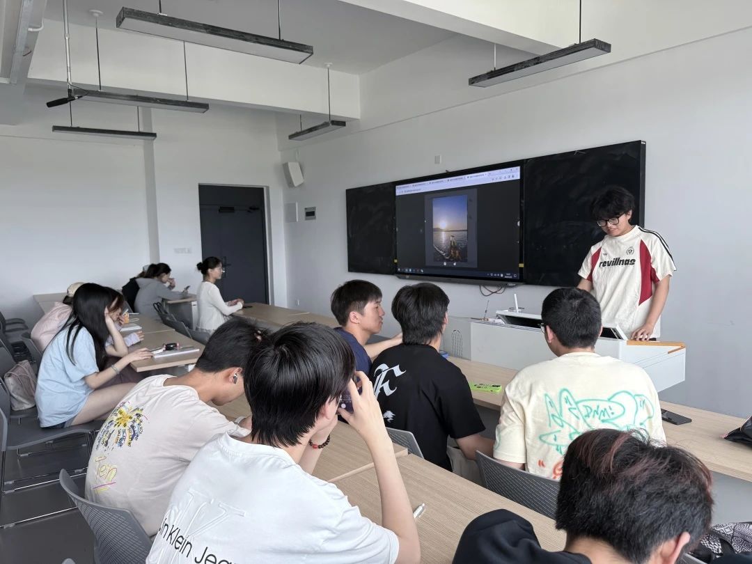 在活动最后的分享会上,同学们以“按下快门的理由”为线索,讲述了照片背后的情绪故事。王昊天同学分享了一张海边落日的特写,他表示在这张图片的拍摄过程中,他体会到了原来最深的治愈是学会与短暂共处、享受片刻的美好时光。
