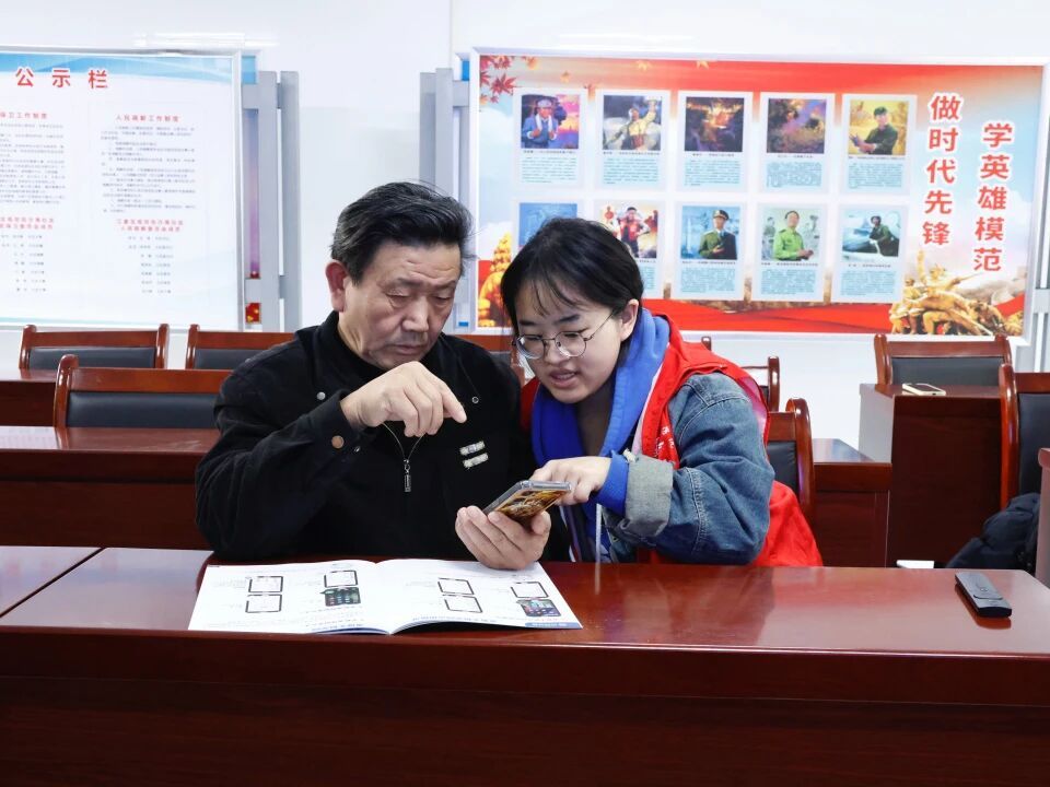 完成就医类工具教学后,志愿者们还帮助老人们掌握高德地图的基础操作及生活服务模块的使用方法。随后进行实操指导,重点协助老人练习“离线地图下载”和“实时公交查询”的操作。并且针对视力不佳的老人,指导他们放大字体、开启语音导航。最后,志愿者们还提醒老人们“离线地图需定期更新”。
