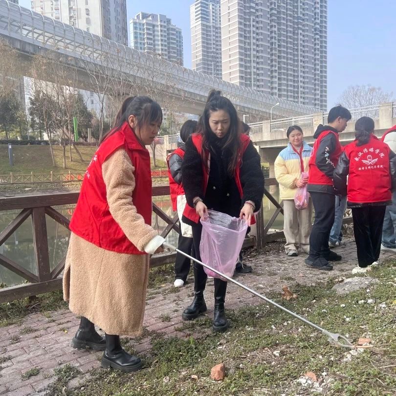 活动中,我院学生志愿者分为各活动小组,在老师们的带领下分别进行了江岸巡查,社区清洁和法律知识普及。