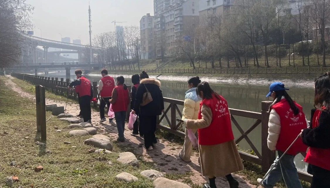 社区清洁中,志愿者们沿河沿江而行,相互配合,不怕脏不怕累,提着垃圾袋,拿着垃圾钳清除积存垃圾,有的直接用手捡拾烟头杂物,用实际行动体验环卫工人的辛苦,用劳动实践诠释着为人民服务的雷锋精神。