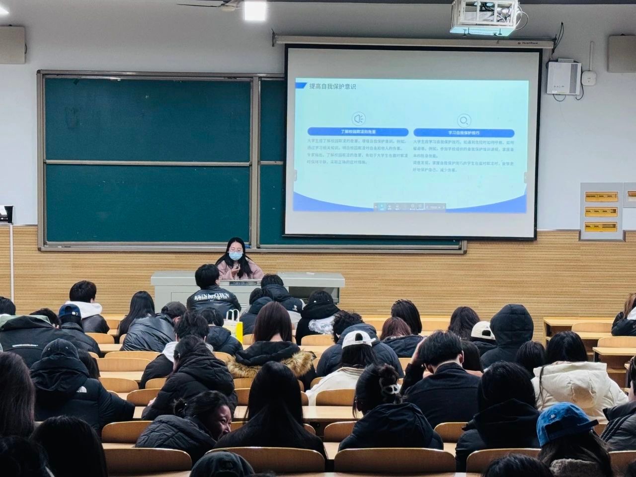 各位辅导员老师结合真实案例,以通俗易懂的语言向同学们讲述了校园欺凌的常见形式,无论是肢体上的推搡殴打,还是言语上的侮辱谩骂、社交关系中的孤立排挤,都让同学们清晰地认识到校园欺凌并非遥远的概念,而是可能就发生在身边。在讲述过程中,老师们还深入剖析了这些行为背后的深层原因,引导同学们思考如何从根源上预防此类事件。