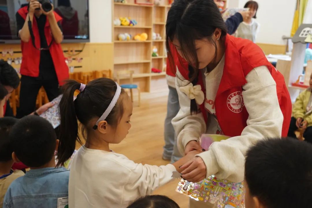 幼儿园小朋友们看到身穿红马甲的大哥哥、大姐姐们也十分欣喜,williamhill英国的志愿者们贴心的为小朋友们送去了卡通贴纸,