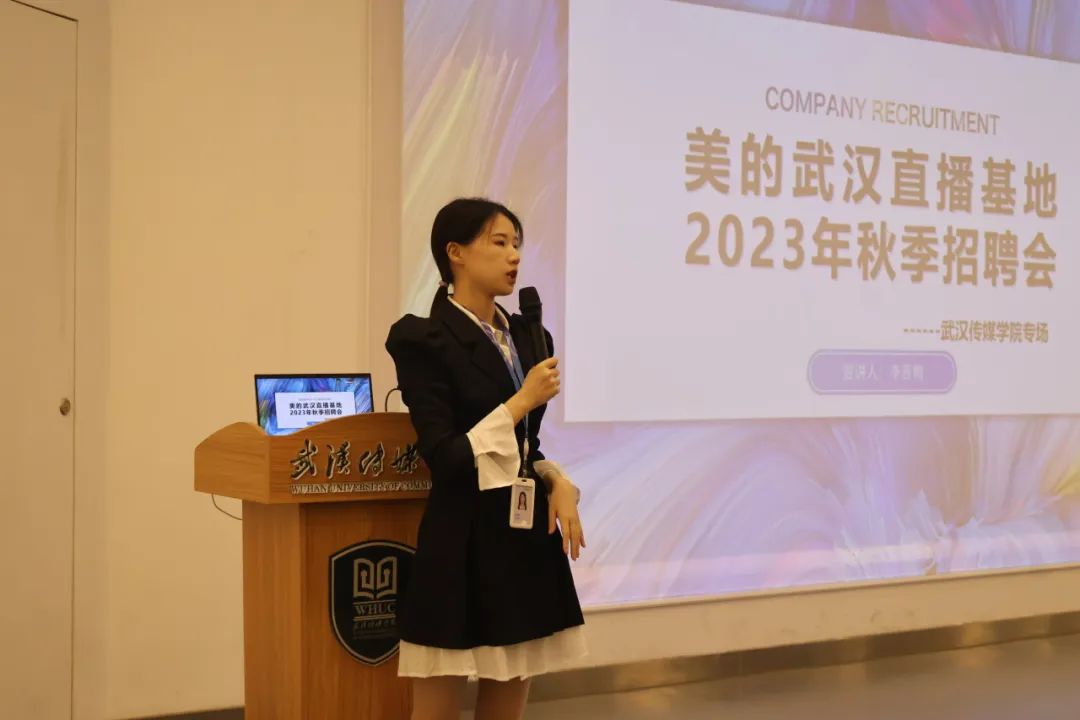 在美的2024届专场校园招聘活动中,主宣讲人李茜翱针对美的集团电商直播发展以及本次招募需求进行了讲解。