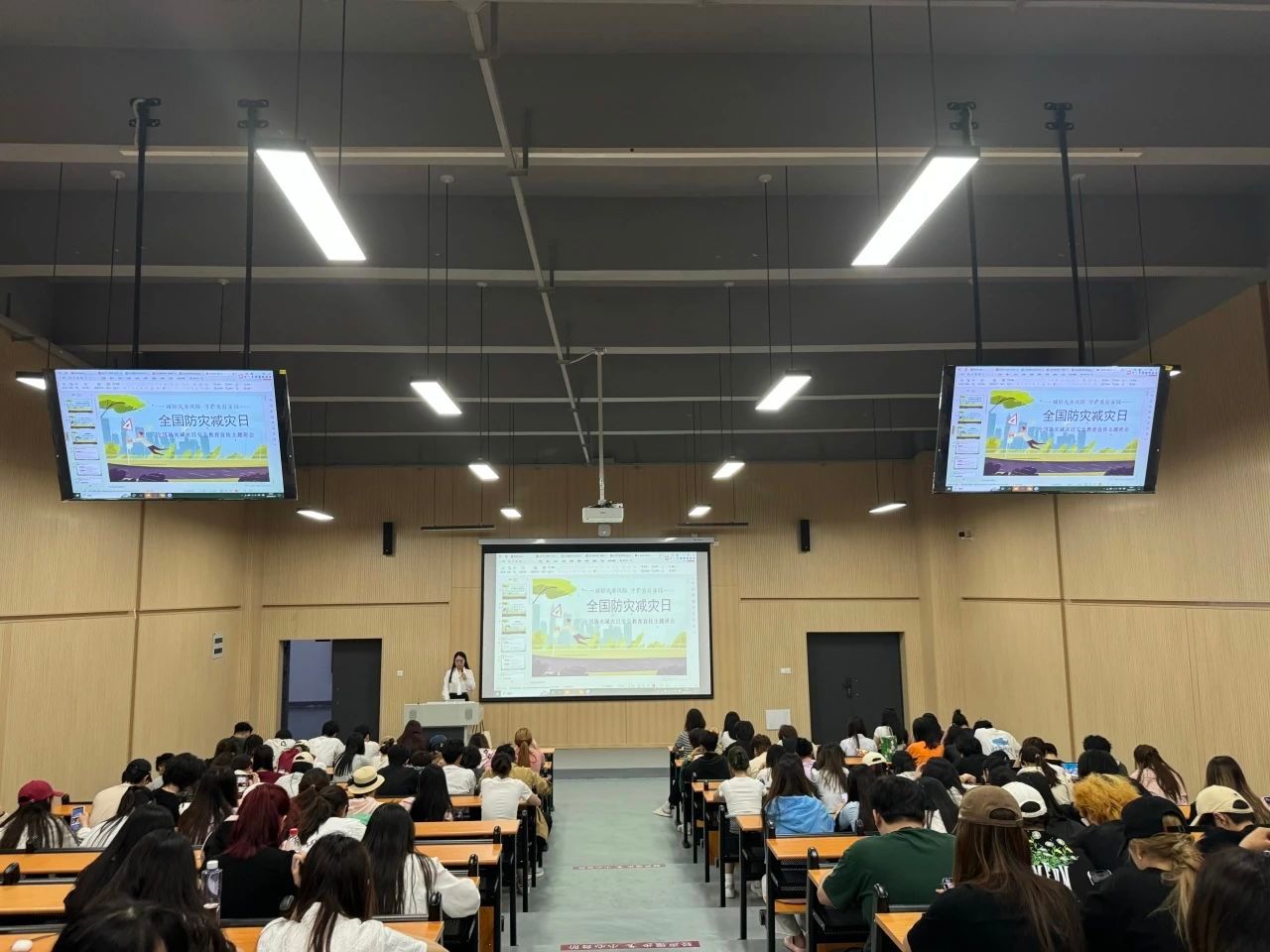 我院积极将学校通知落到实处,在各级组织内相继开展专项活动。各位辅导员老师组织各班开展相关主题教育班会,通过图片、文字、视频等形式,向同学们普及防灾减灾和节能减排的相关知识,让同学们增强自救自护能力,树立尊重生命、珍惜生命的意识,同时引导同学们树立绿色生活的理念。