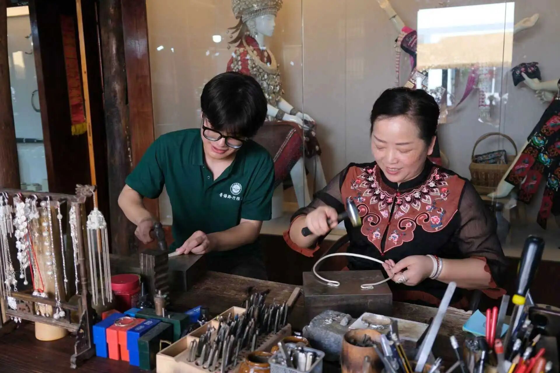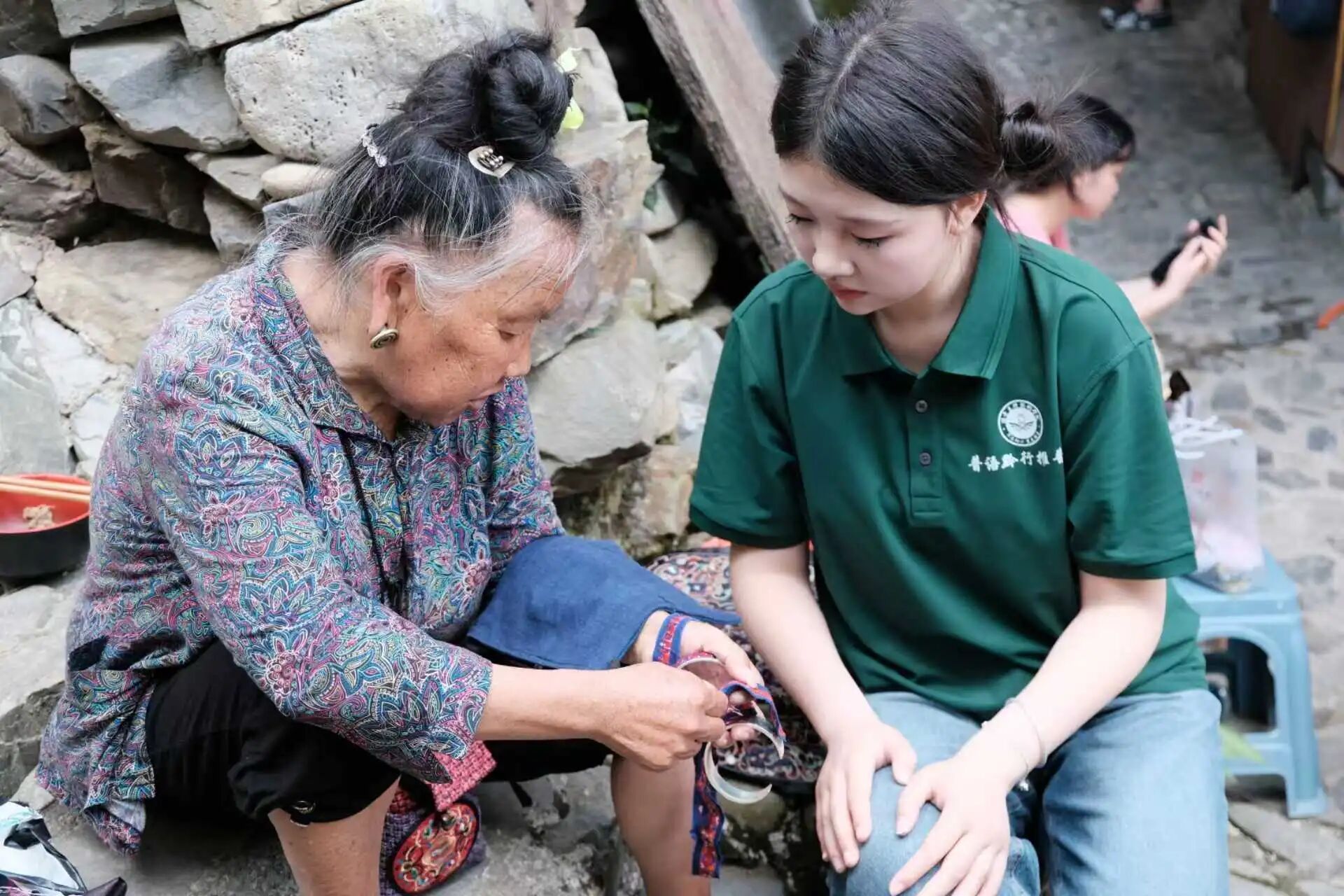 走进龙井村,团队成员不仅探访了苗族银饰锻制技艺非遗传承人,还深入了解到布依族刺绣的独特魅力。团队成员用普通话与传承人进行深度交流,详细了解布依族刺绣和银饰背后的文化内涵,感受民族智慧。在交流的过程中,团队成员发现,普通话跨越了民族语言的障碍,拉近了他们与传承人之间的距离,更让这些古老的技艺能够突破语言的限制,走向更广阔的舞台,为民族文化的传承与创新注入新的活力。